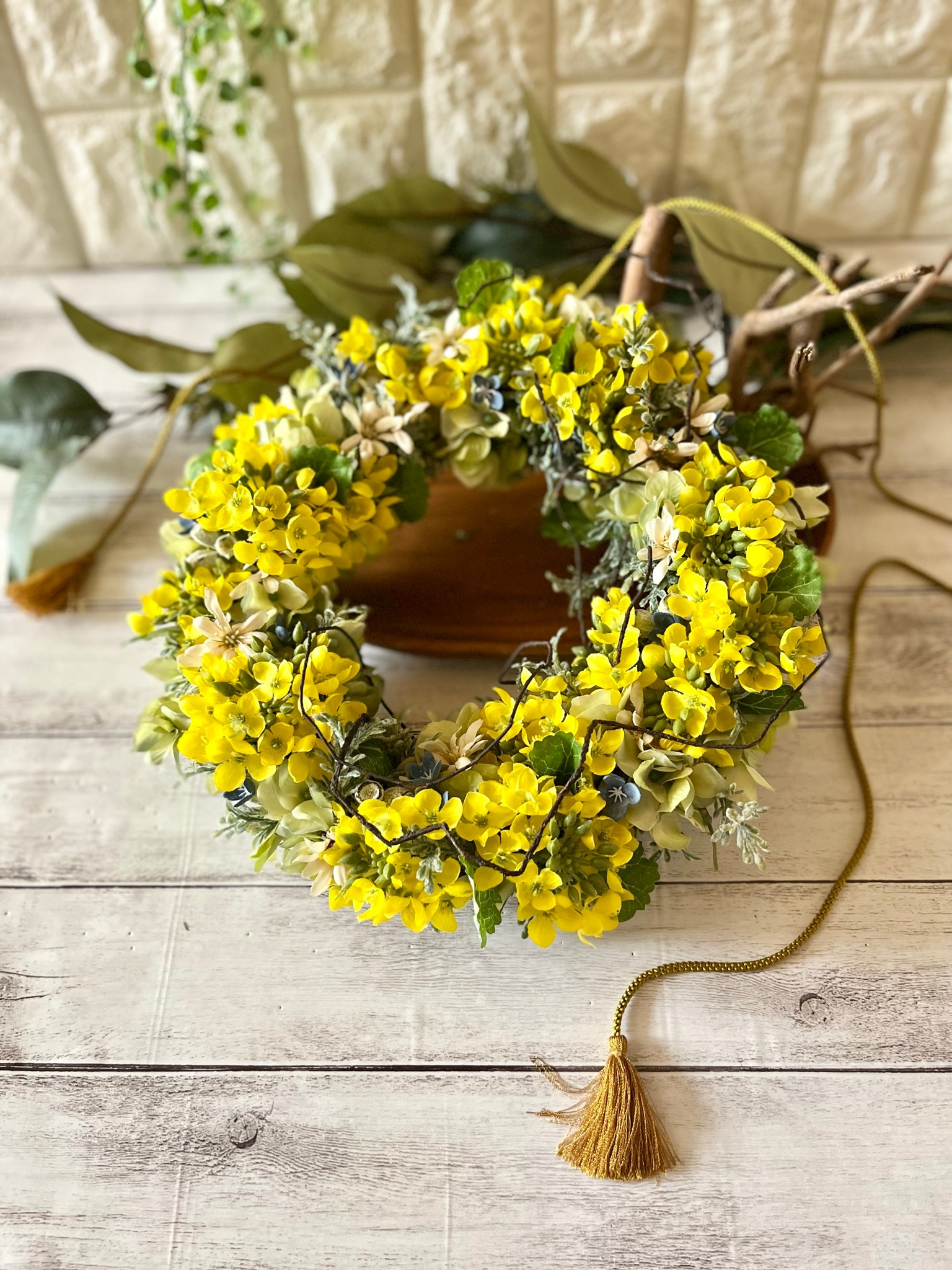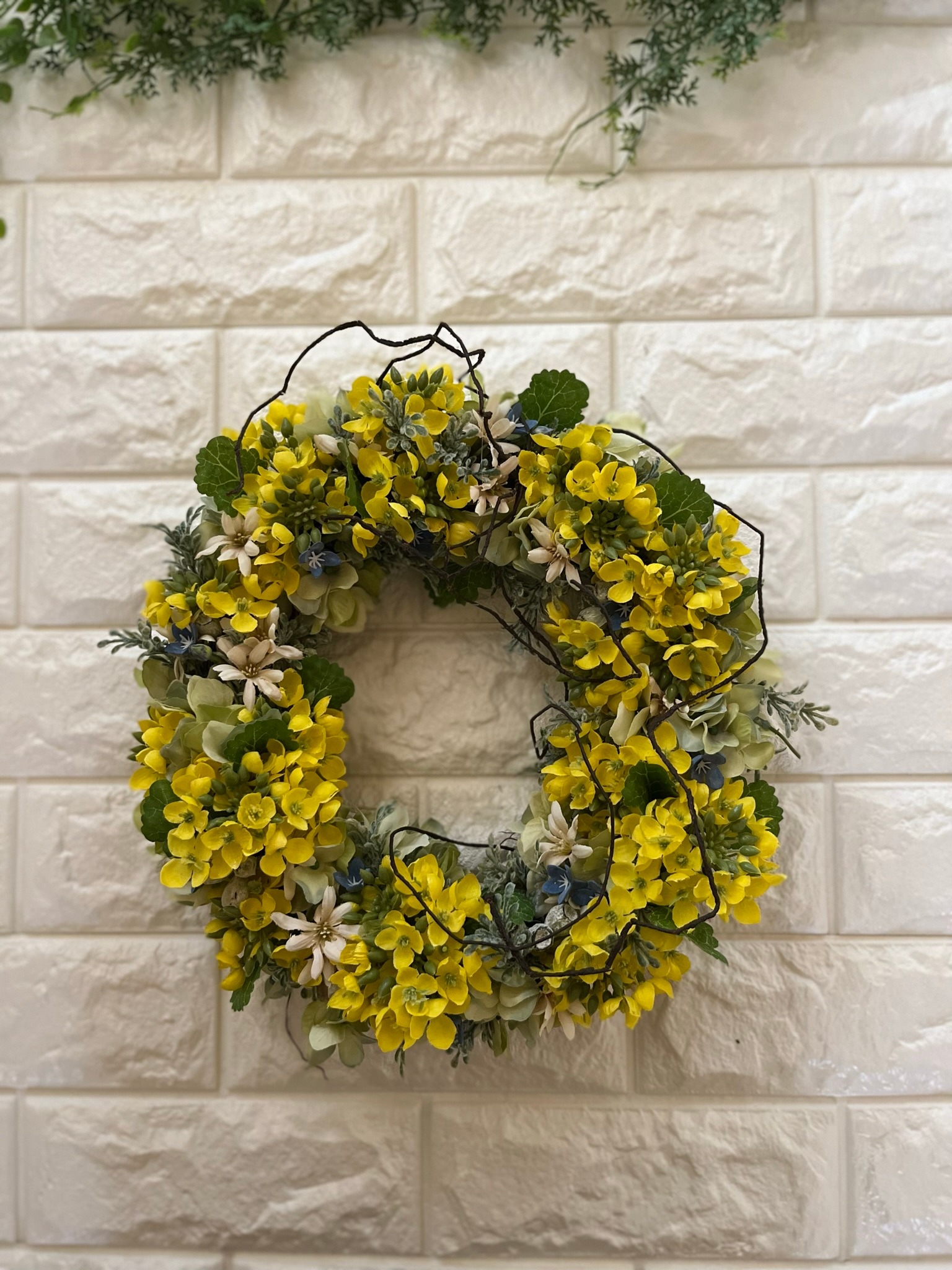 築地の企業と協力して販売しています東京の会社の事務所に菜の花のリースのご注文を頂きました。