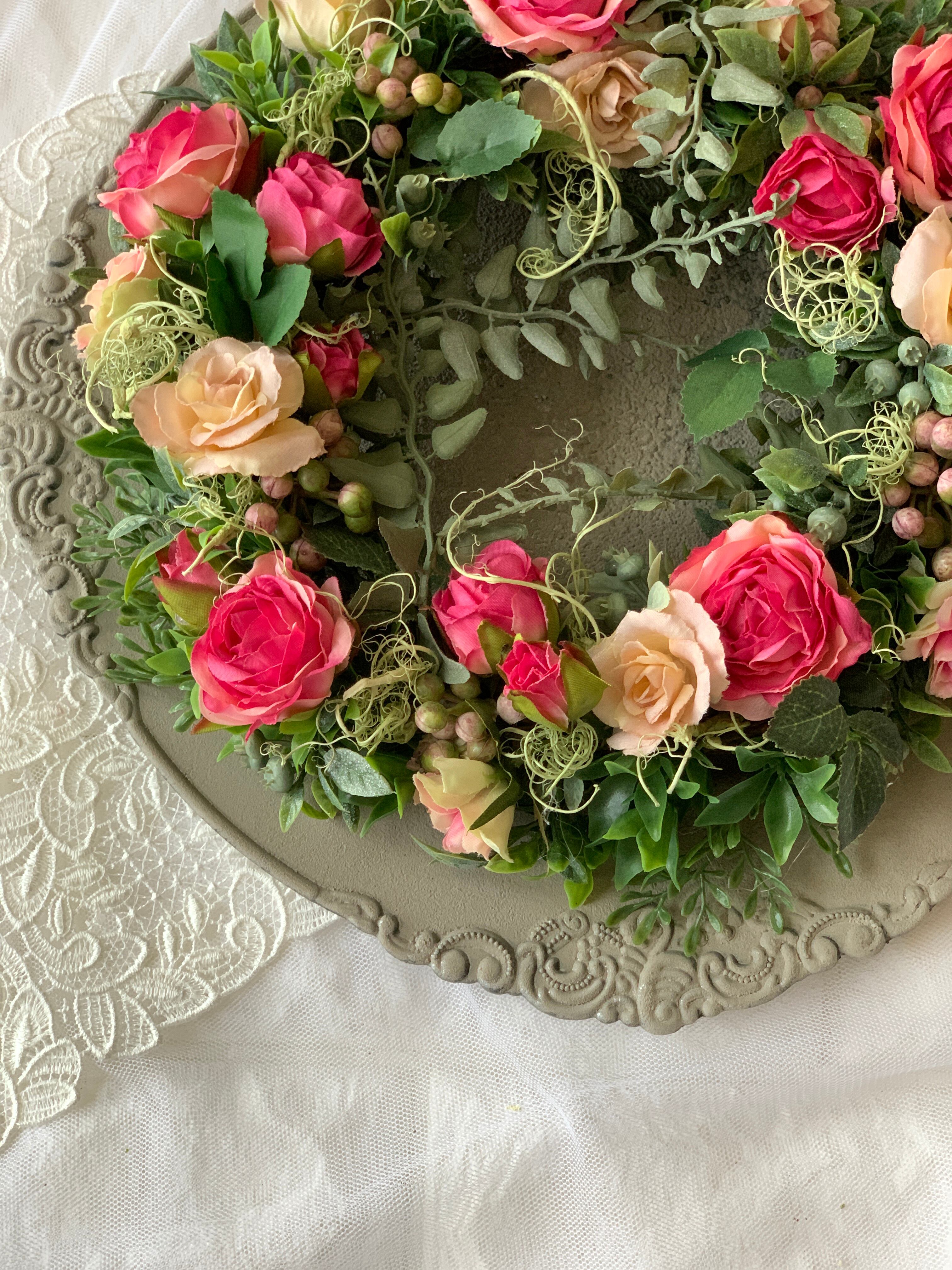 初夏のバラリース 玄関 インテリア プレゼント アーティフッシャルフラワー