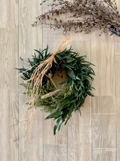 プリザーブドのグリーンのみのシンプルでナチュラルなリースを制作しました。