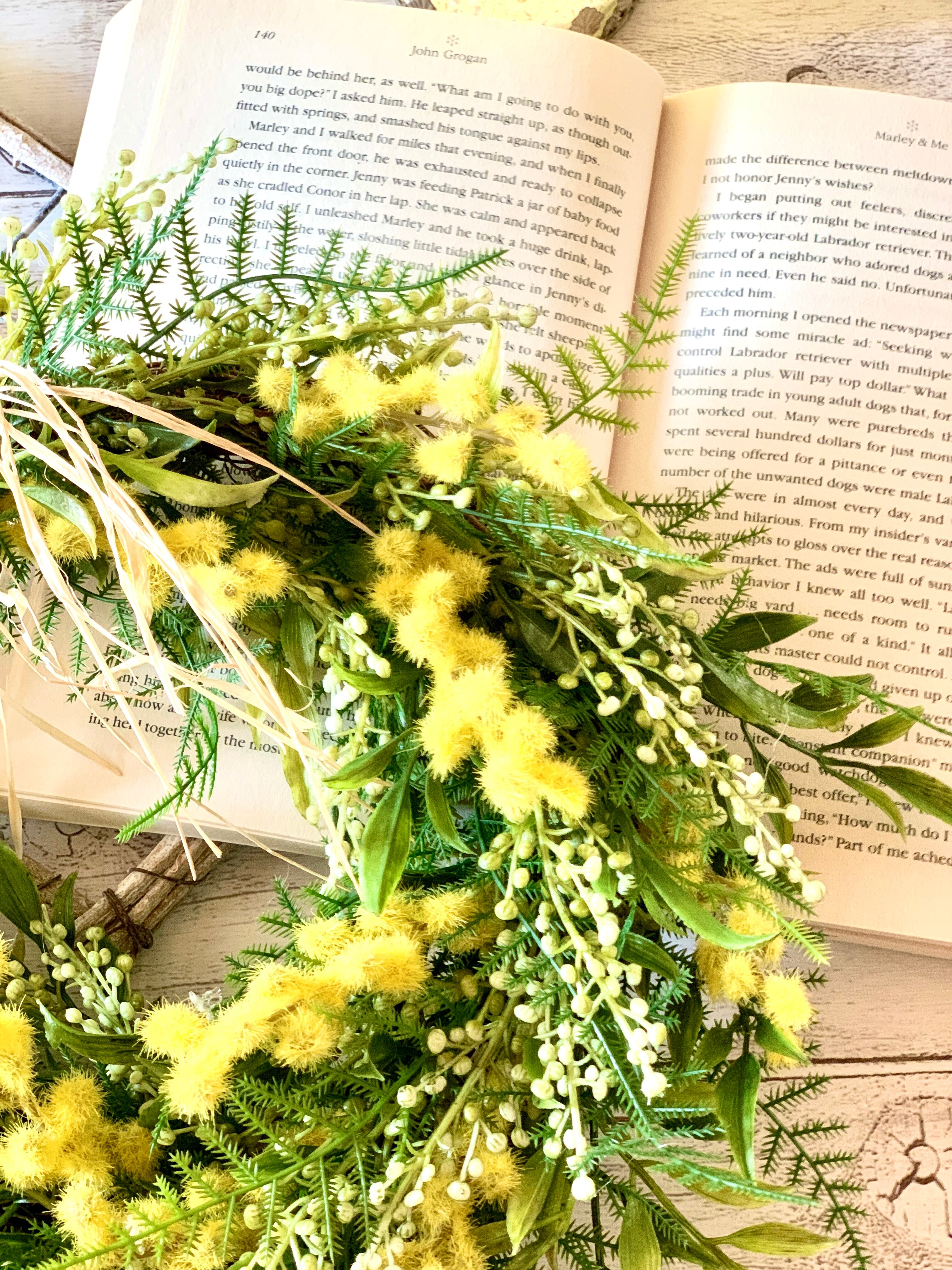 ミモザ春リース 玄関 インテリア ナチュラル ギフト お祝い アーティフィシャルフラワー