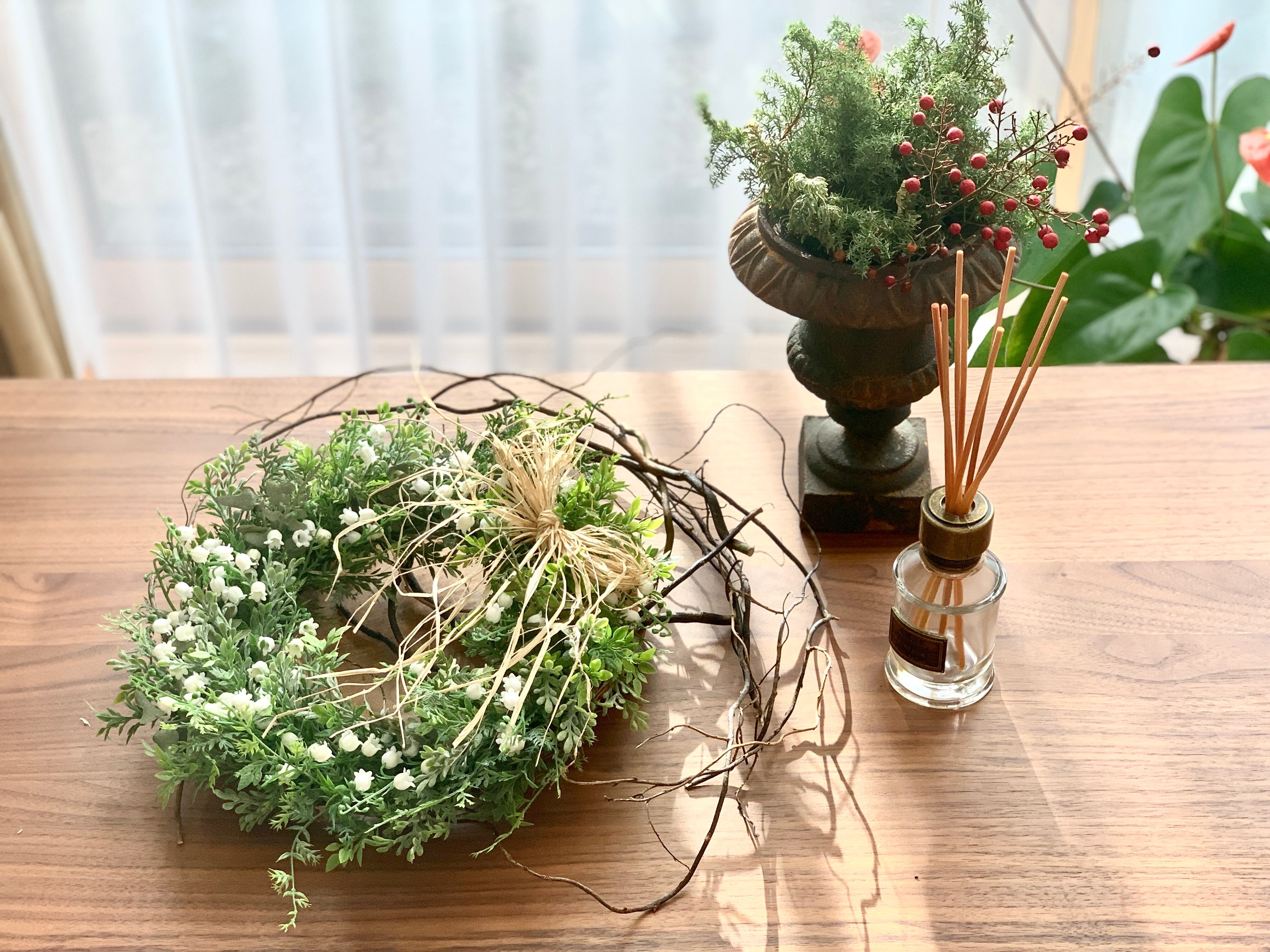 リース 記念日 夫婦贈呈 新築祝い インテリア プレゼント 造花 玄関 キッチン 洗面所 アーティフィシャルフラワー