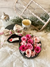 プリザーブドフラワーは生花のみずみずしさや美しさを長期間楽しんでいただけるように特殊加工されております。