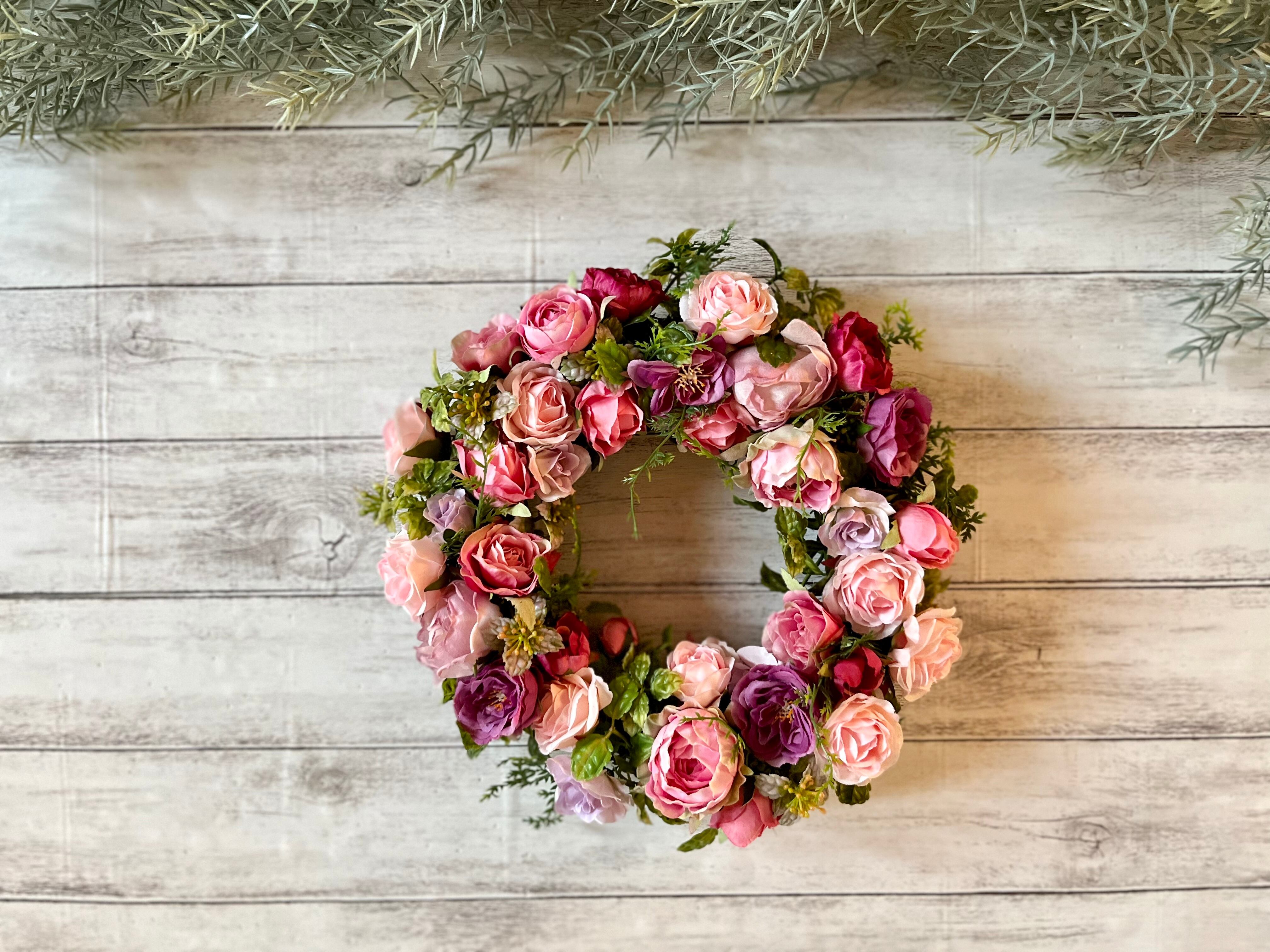 ローズリース 玄関 プレゼント アーティフィシャルフラワー ギフト ナチュラル