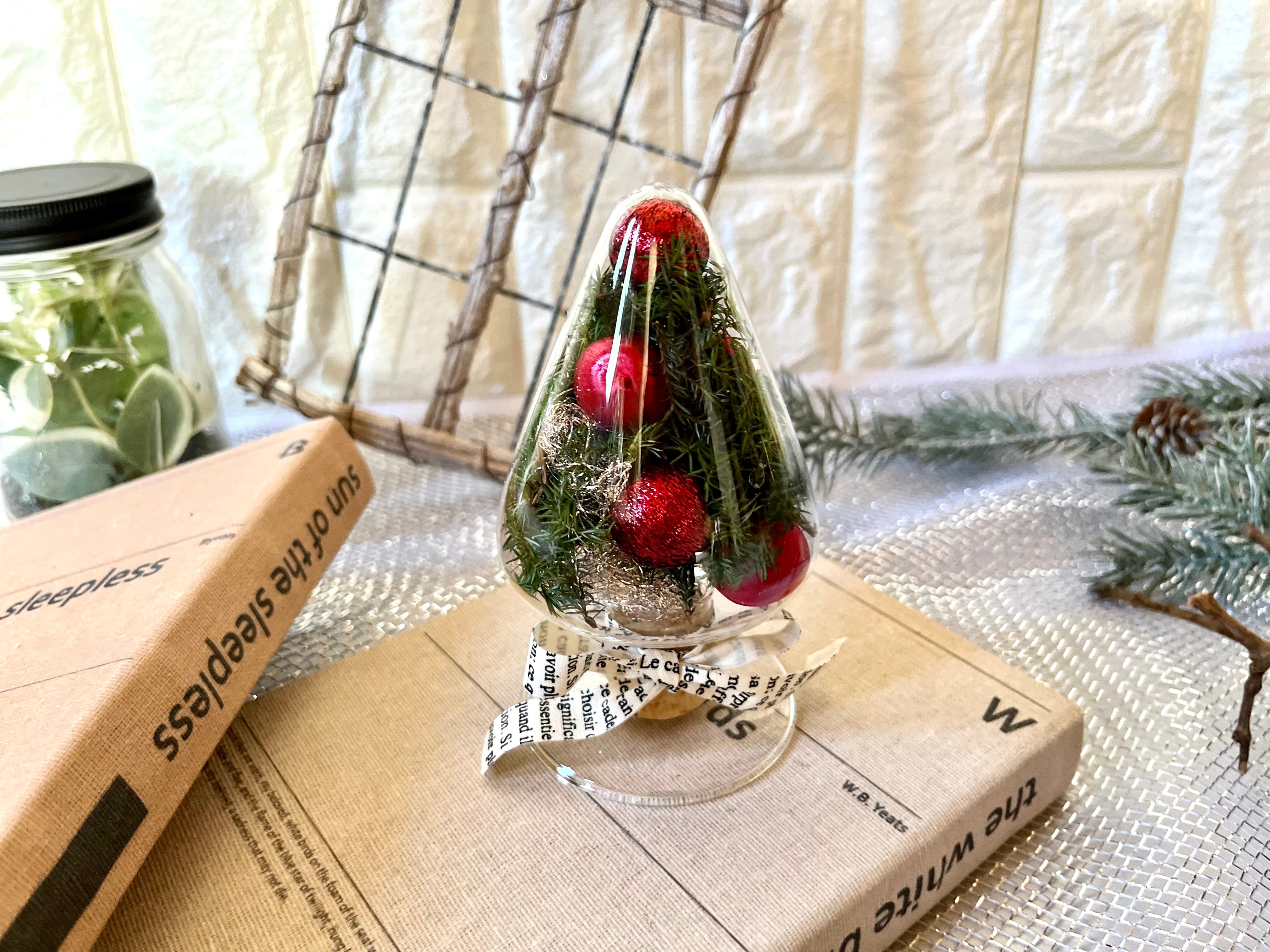 ボトルツリーにシルバーとレッドのクリスマスボールをアレンジした可愛いツリーです。